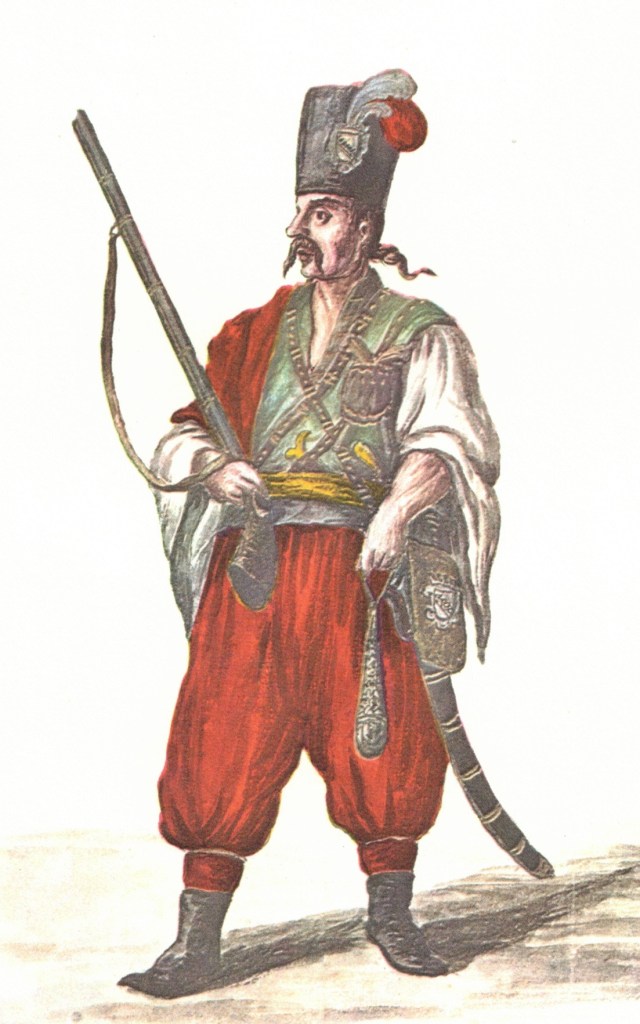 Carabiniere (disegno di metà ‘700 di Grevembroch. Edizione Filippi, Venezia)