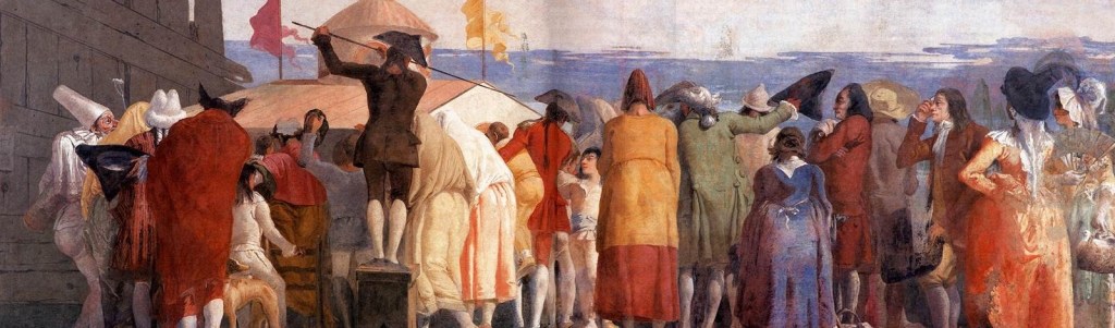 I ricchi veneziani, imbellettati secondo gli usi della moda settecentesca, lo disgustano.